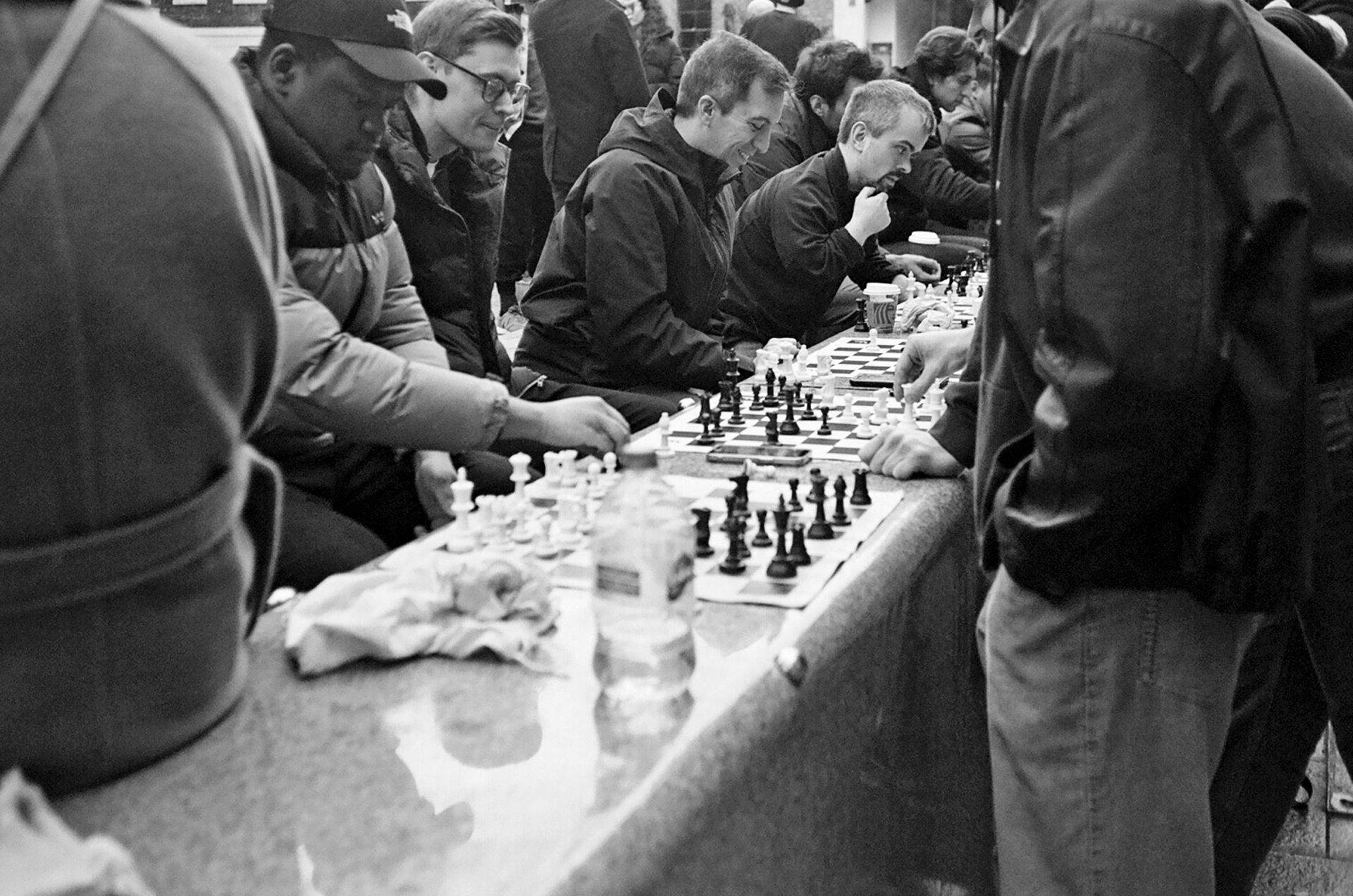 Open-air chess players engrossed in their games, Shoreditch on an Agfa Optima Sensor 335